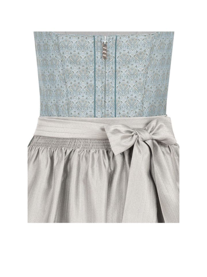Если вы мечтаете о сногсшибательном появлении, то у нас есть для вас идеальное платье. Наш дирндль Efia миди в сине-зеленом цвете от Nübler - это воплощение элегантности. Нежный сине-зеленый цвет излучает изысканность, а узор лифа поистине уникален. Дирндль имеет квадратный вырез и застегивается на молнию спереди. Красиво выполненный язычок молнии с отделкой под старинное серебро, украшенный сверкающими стеклянными камнями, действительно привлекает внимание. Однотонная юбка из мягкой, струящейся ткани прекрасно подчеркивает вашу фигуру. Образ дополняет элегантно переливающийся полосатый фартук. В этом дирнделе вы будете идеально и вне времени одеты, готовые произвести фурор на любом торжестве. Совет: Хотите еще больше подчеркнуть свой дирндль? Тогда мы рекомендуем приобрести подходящий бюстгальтер или блузку для дирндля из нашей коллекции. Блузка к дирндля идеально подчеркнет ваше декольте и добавит очарования вашему дирндля. С блузкой к дирндля вы можете добавить романтичности или игривости вашему образу. Закажите блузку или блузку к дирндля прямо сейчас и завершите свой сказочный традиционный наряд.