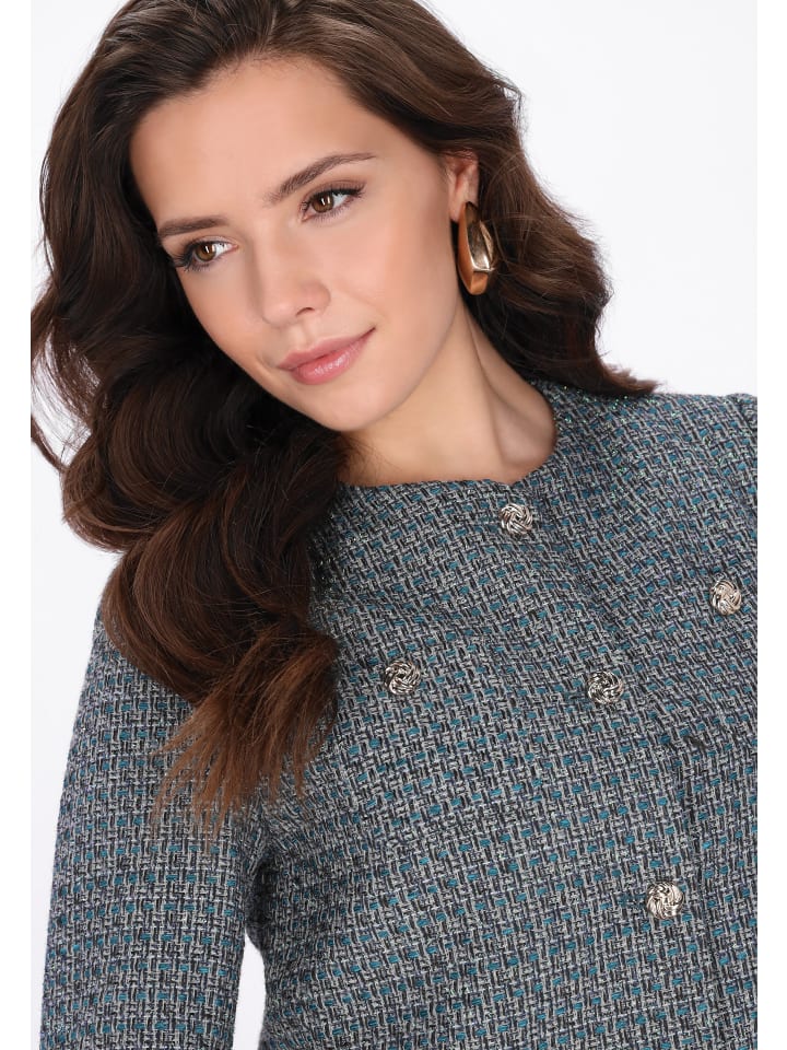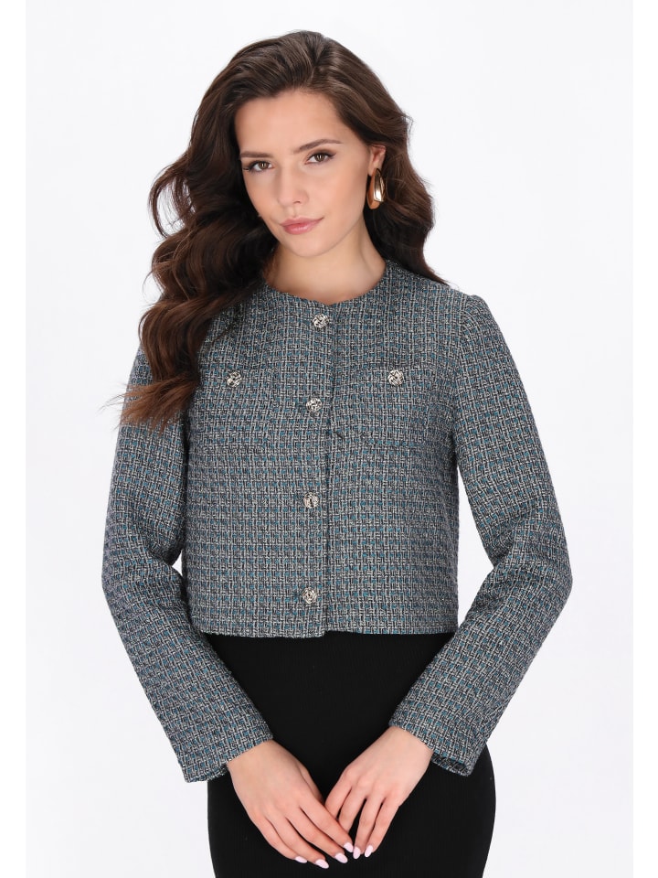 Стильный блейзер из коллекции Festival, сочетающий элегантность и современный дизайн. Этот блейзер прямого кроя, укороченной длины, с круглым вырезом, длинными рукавами и планкой на одной пуговице с декоративной отделкой, имеет нагрудные карманы и изготовлен из фактурной букле-ткани, что делает его идеальным для особых случаев и праздничных мероприятий.