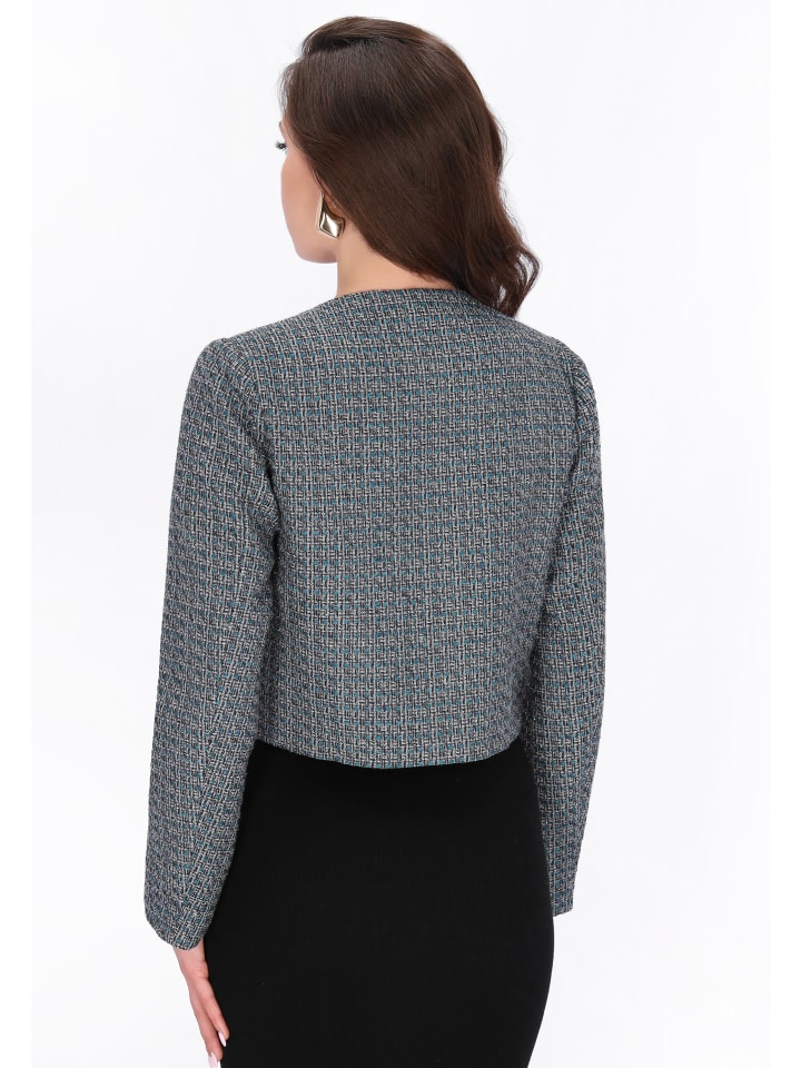 - Укороченный блейзер прямого кроя с круглым вырезом и длинными рукавами