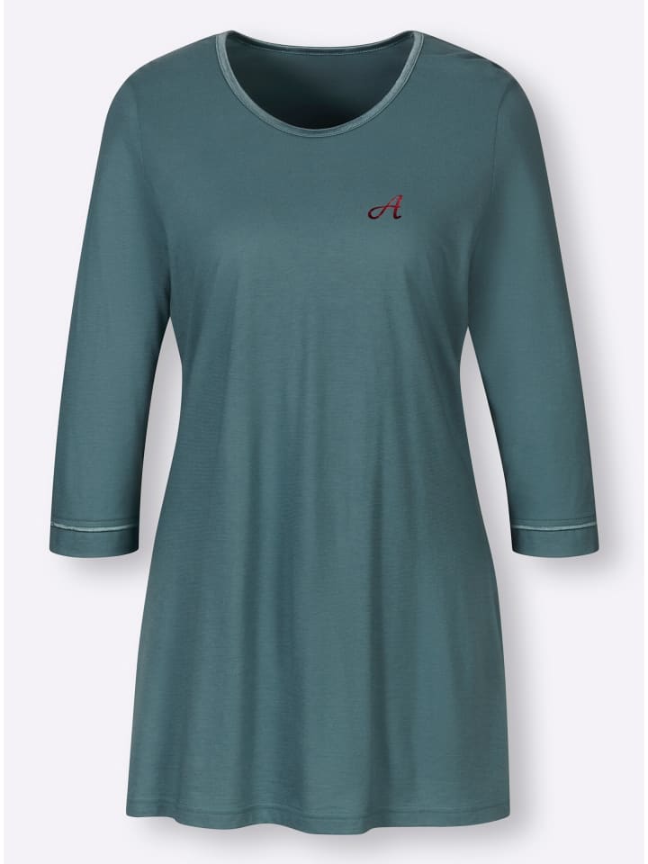 Идеальная пижама для тех, кто следит за модой! Удлиненный топ имеет свободный крой благодаря слегка А-образному силуэту и боковым разрезам. Он украшен принтом спереди, атласной окантовкой по круглому вырезу и небольшими разрезами на рукавах три четверти. Однотонные леггинсы имеют удобный эластичный пояс и прямой низ. Изготовлены из высококачественного одинарного трикотажа от Ascafa.