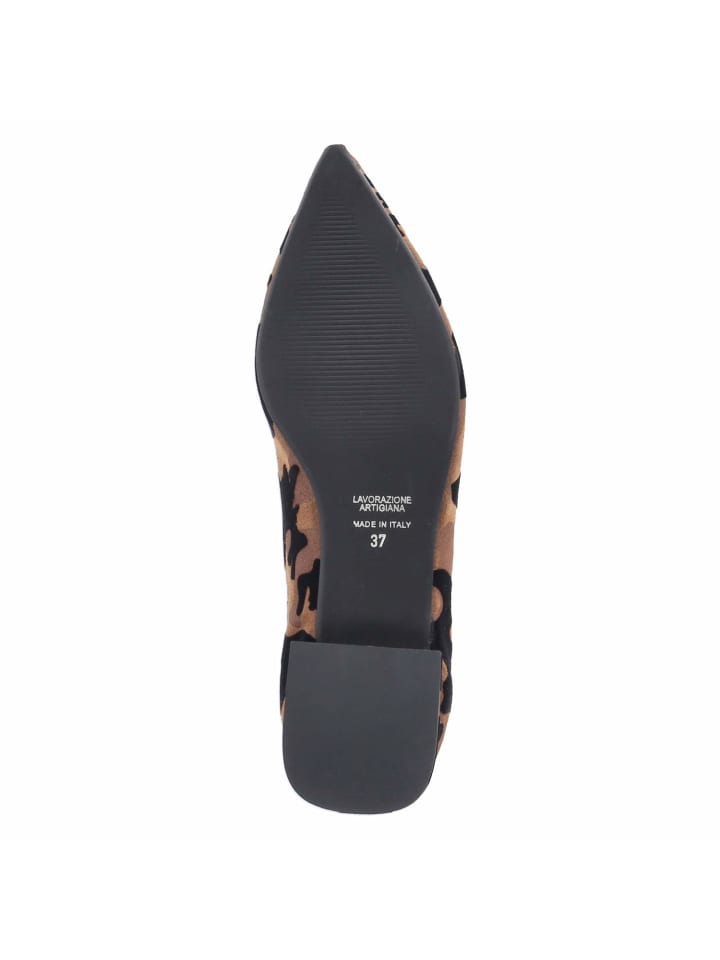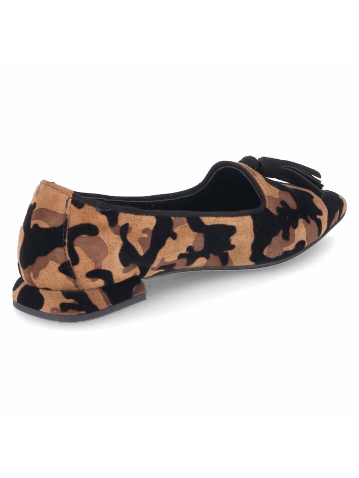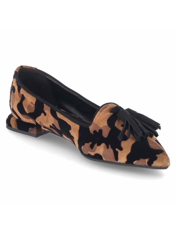 Универсальный аксессуар для создания изысканного стиля: эти женские балетки Kaerlek сочетают в себе заостренный носок и коричневый камуфляж с приятной на ощупь бархатистой замшей. Кисточки добавляют легкости, а плоский каблук делает их подходящими для города. Комфорт обеспечивается кожаной стелькой, легкой амортизацией пятки и гибкой, цепкой подошвой; эта удобная и легкая модель идеально подходит для ношения в течение всего дня. Конструкция без застежек экономит время, а размер соответствует заявленному. Совет модника: минималистичные наряды в коричневых тонах позволяют рисунку выглядеть ненавязчиво. Вечером элегантный контраст создаст атласное платье-комбинация шоколадно-коричневого цвета.