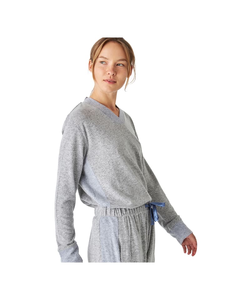 Комплект для сна состоит из топа с длинными рукавами и V-образным вырезом и отличается удобным и простым дизайном. Также доступны модели с капюшоном.