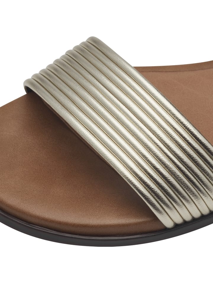 Откройте для себя эти стильные сандалии, идеально сочетающие элегантность и повседневный стиль. Современный дизайн, выполненный из высококачественной кожи и синтетических материалов, дополнен металлическими акцентами и изящным силуэтом, а плоская подошва толщиной 15 мм обеспечивает исключительный комфорт. Идеально подходящие для отдыха, летних вечеринок и отпуска, они легко станут неотъемлемой частью вашего гардероба. Их универсальные черный и коричневый цвета прекрасно сочетаются с различными нарядами, добавляя изысканности любому образу. Особенности: - Мягкий каблук 2,5 см для комфорта - Надежная фиксация благодаря технологии ANTIslide - Индивидуальная посадка с функцией TOUCH-IT - Синтетическая подкладка для комфорта - Элегантная пряжка для удобного застегивания Стелька: Кожа - Другой материал Подкладка: Другой материал Подошва: Другой материал Верх: Кожа - Другой материал