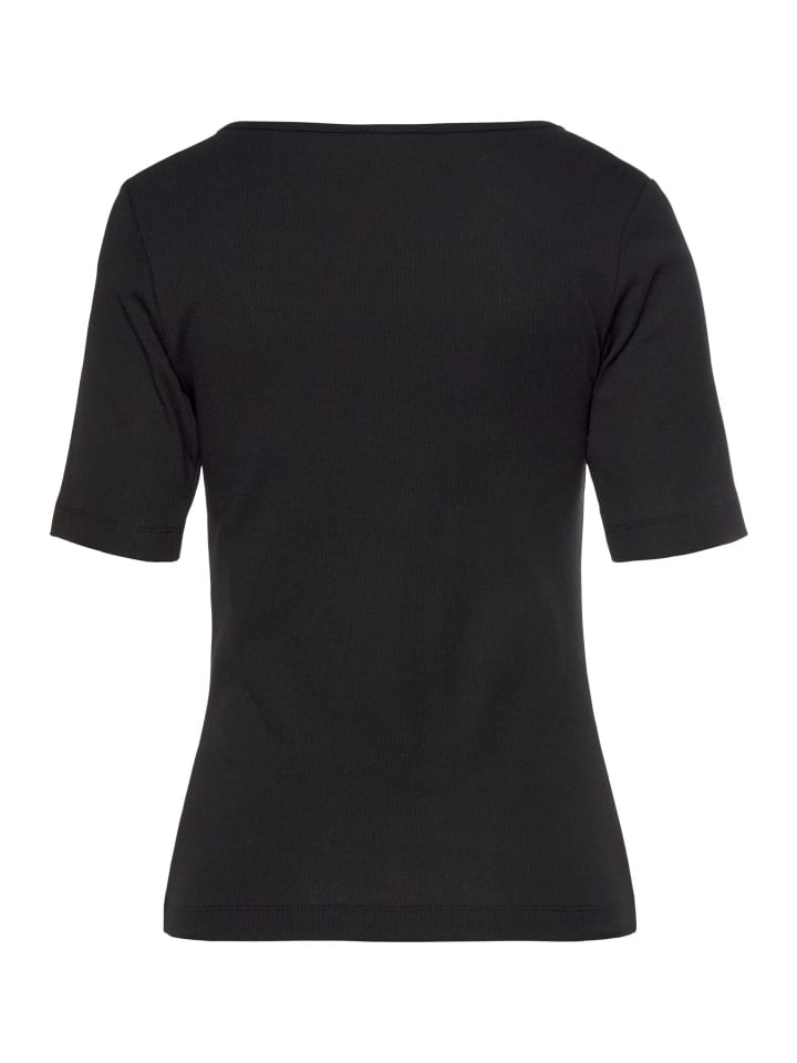 Футболка с круглым вырезом от Lascana. С рукавами до локтя. Состав ткани: 60% полиэстер, 36% вискоза, 4% эластан.