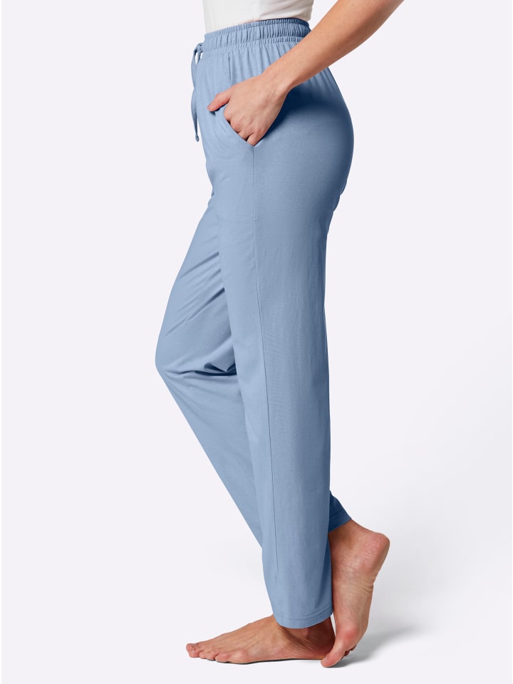 Закажите эти подходящие по цвету пижамные штаны из трикотажной ткани. Они имеют удобный эластичный пояс с регулируемым шнурком и два кармана. Сертифицированы GOTS.