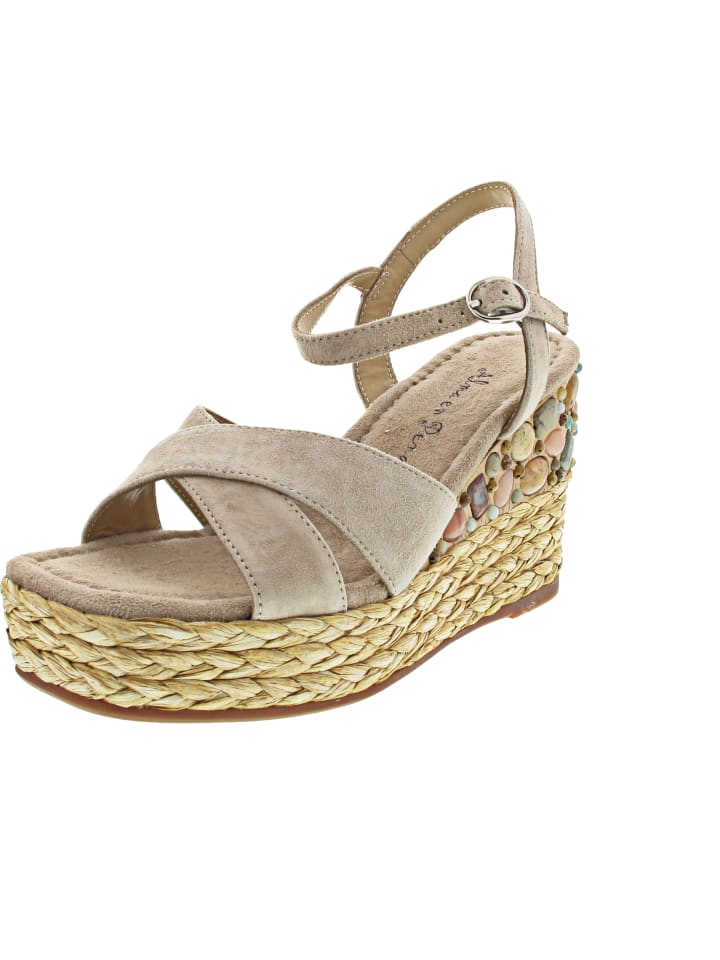 Устойчивая танкетка - Противоскользящая подошва - Мягкая стелька - Платформа с эффектной яркой отделкой под рафию - Регулируемый ремешок на щиколотке - Модные сандалии с эффектной подошвой - Настоящая изюминка - Высокие каблуки - Обязательно к покупке