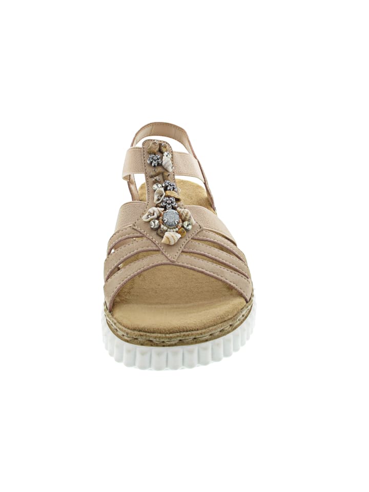 Мягкая стелька - Оптимальная посадка - Незаметно вшитая эластичная лента - Гибкая, нескользящая подошва - Танкетка с платформой - Ширина: H - Модные сандалии с декоративной аппликацией
