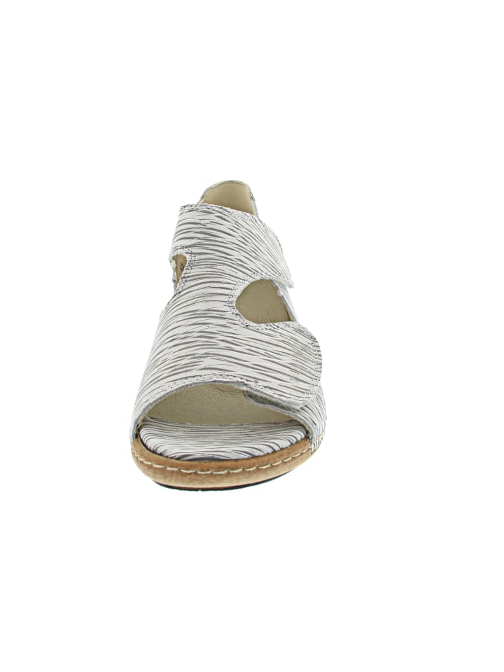 Ощутите заметный комфорт при ходьбе - съемная стелька, стабилизированная липучкой - танкетка с пробковой текстурой - узкий каблук - закрытый каблук - две практичные застежки на липучке - легко надевать и снимать - чрезвычайно удобные сандалии Waldläufer - высокий комфорт при ношении - металлический узор