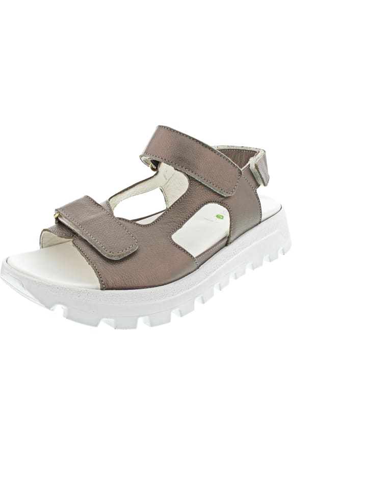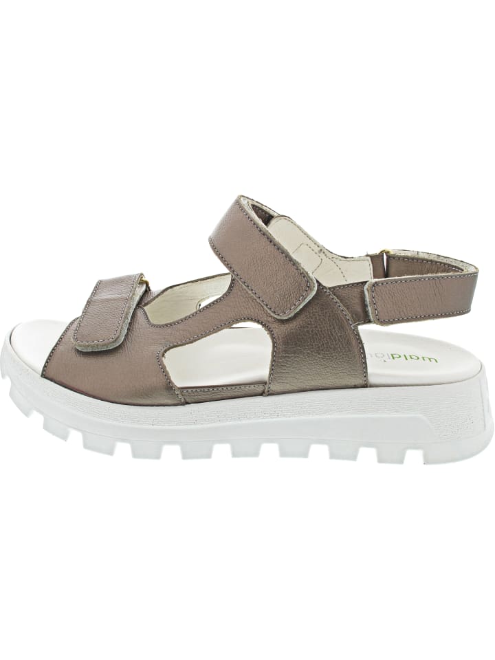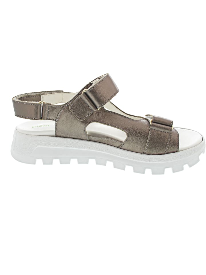 Ощутите заметный комфорт при ходьбе - съемная стелька на липучке для устойчивости - гибкая подошва - ширина: H - форма: H-Nele - три регулируемые застежки на липучке для оптимальной поддержки - высокий комфорт при ношении - чрезвычайно удобные сандалии Waldläufer - металлический блеск