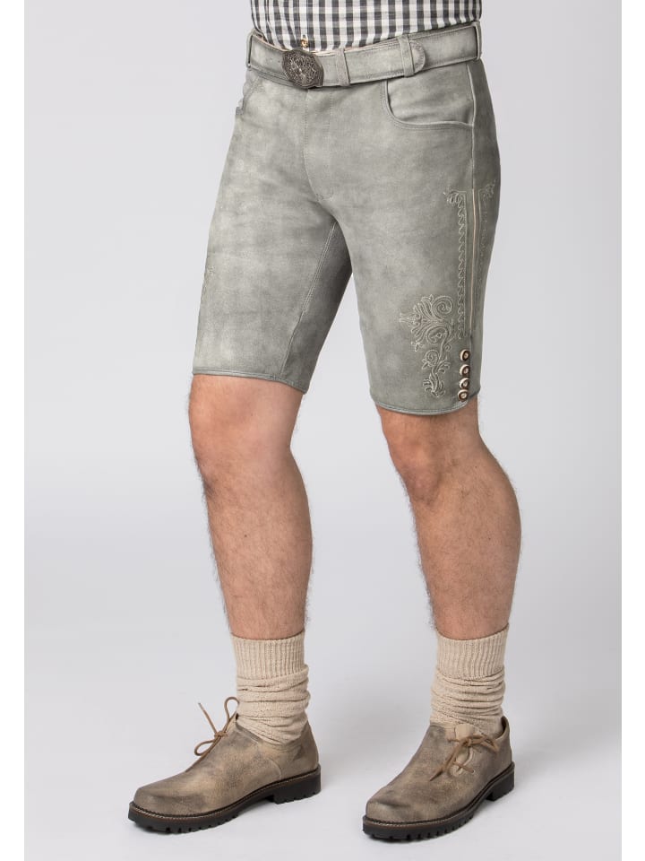 Традиционные кожаные бриджи Alois от Stockerpoint Classics. Эти короткие кожаные бриджи, изготовленные из высококачественной дубленой кожи дикой козы с отделкой под оленью кожу, отличаются исключительной текстурой и идеально сочетаются с классическими пуговицами из рога. Вместо нагрудника эти бриджи имеют застежку-молнию. Традиционная вышивка ненавязчиво подчеркнута, что придает стилю неповторимый характер. Бриджи поставляются с поясом и пряжкой с изображением оленя из античного серебра. Это универсальный предмет одежды, который идеально сочетается со многими традиционными нарядами. - В комплекте пояс - Шнуровка сзади на поясе - Пуговицы под олений рог - Детали ручной работы и высокое качество изготовления - 100% натуральная кожа Материал: 100% кожа