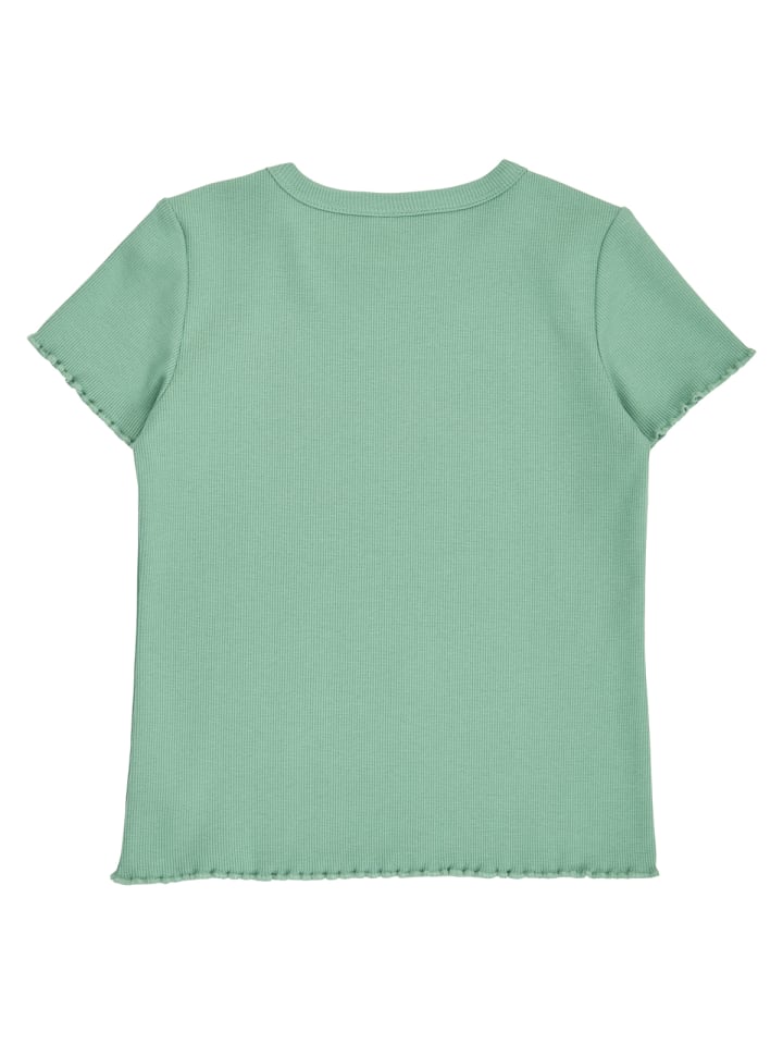 Откройте для себя эту очаровательную базовую футболку, чьи милые детали создают игривый образ. Нежные оборки на рукавах и подоле добавляют мягкости и комфорта, делая каждый наряд особенным. Изготовленная из мягкой, эластичной хлопковой ткани в рубчик 2x2 с эластаном и плотностью 270 г/м², эта футболка обеспечивает комфорт и оптимальную свободу движений. Будь то для игр, школы или отдыха, эта футболка сочетает в себе комфорт и стиль и быстро станет любимой вещью в вашем гардеробе. Стандарт GOTS. Сертифицировано Ecocert Greenlife, лицензия № 151714. Этот продукт сертифицирован GOTS Organic. В настоящее время это самый высокий стандарт для одежды. Все производственные процессы, такие как окрашивание, ткачество и пошив, осуществляются в соответствии со строжайшими правилами с уважением к окружающей среде. Условия труда также тщательно контролируются на каждом этапе производства. Хлопок 95%, эластан 5%