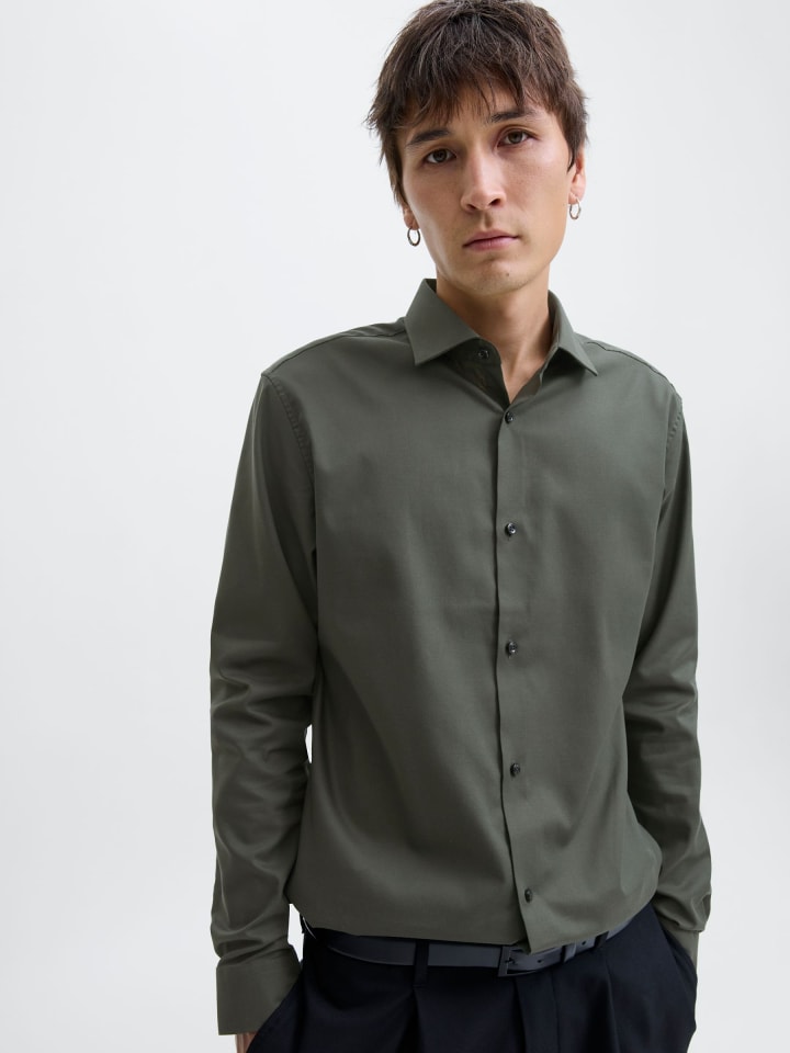 Супер удобная, супер простая. Эта базовая рубашка - ваш незаменимый элемент гардероба на каждый день. Мягкая, дышащая и подходит ко всему. Хлопок - натуральное волокно, известное своей мягкостью и воздухопроницаемостью. - Тип изделия: Рубашка - Воротник: Рубашечный - Рукав: Длинный - Застежка: Планка на пуговицах - Крой: Приталенный - Стиль: Традиционный - Классическая рубашка - Приталенный крой - Длинный рукав - Материал: 100% хлопок
