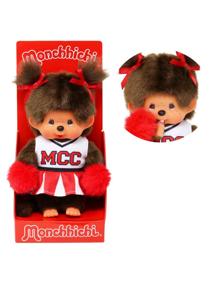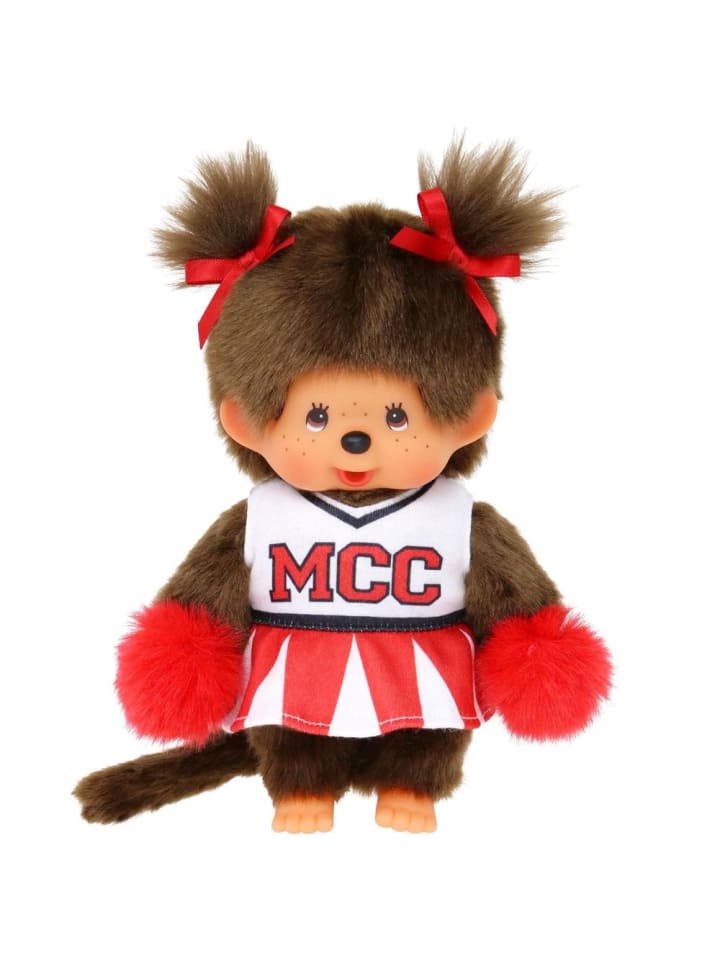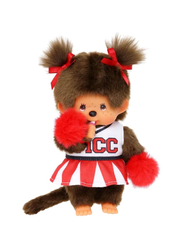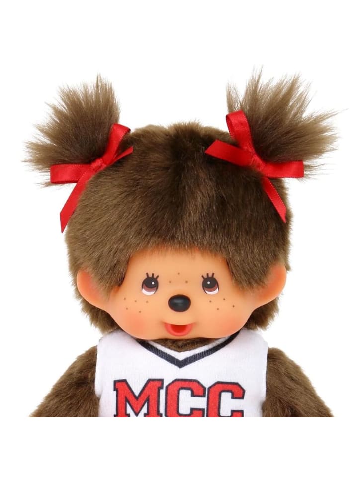 Девочка в платье чирлидерши | Кукла Monchhichi 20 см | две косички