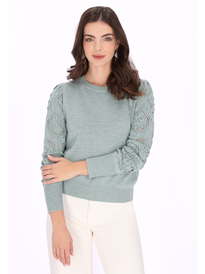 Этот модный свитер из коллекции Casual - идеальный выбор для любителей комфорта и стиля. Изготовленный из мягкой трикотажной ткани с изящным ажурным узором, он обеспечивает комфорт в течение всего дня. Классический крой гарантирует свободу движений, а круглый вырез и длинные рукава добавляют универсальности. Он идеально сочетается с повседневной одеждой, будь то джинсы или юбки - идеально подходит для повседневной носки или прохладных дней.