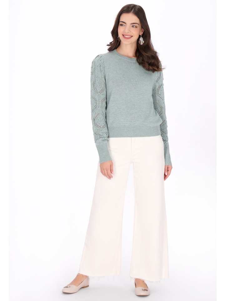 - Свитер прямого кроя с круглым вырезом и длинными рукавами