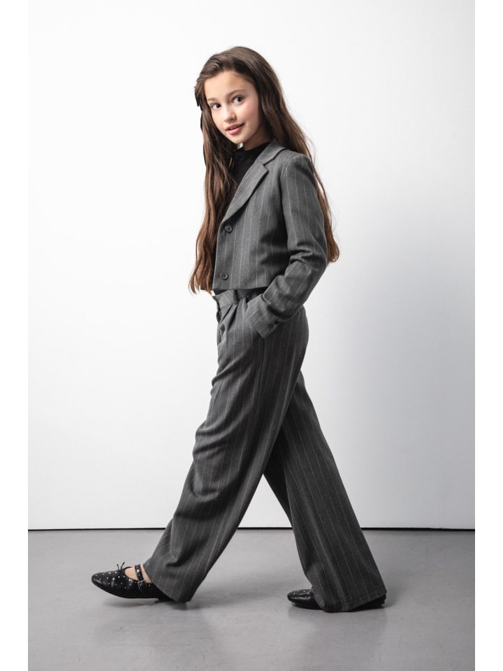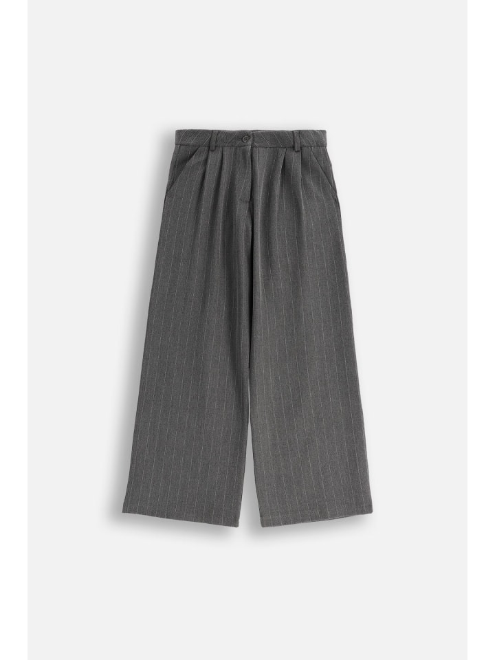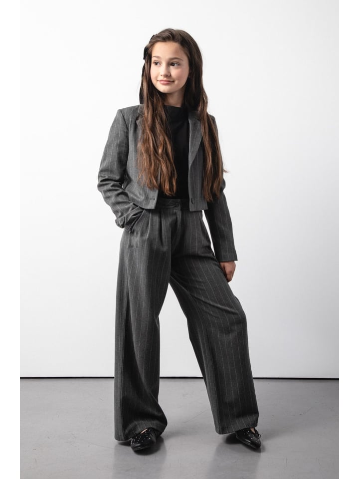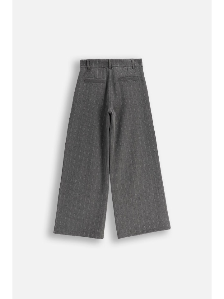 Откройте для себя элегантность и комфорт с нашими широкими брюками для девочек. Изготовленные из легкой ткани, эти серые брюки с едва заметными полосками идеально подойдут для особых случаев. Широкие штанины обеспечивают свободу движений, а зауженный крой добавляет элегантности любому образу. Элегантные широкие брюки. Брюки оснащены пуговицами и молнией для удобства надевания. Карманы на штанинах повышают практичность, а все это дополняется сертификатом ECO 5, гарантирующим безопасность и экологичность производства. Идеально подходят для девочек от 8 до 15 лет, которые хотят чувствовать себя особенными на каждом празднике.
