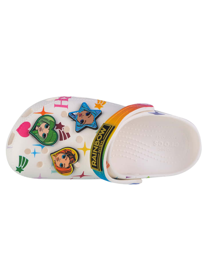 Детские сабо Crocs Classic Rainbow High 208117-90H. Шлепанцы для девочек. Цвет: белый, Материал: синтетика, Тип застежки: без застежки, Форма носка: круглая.