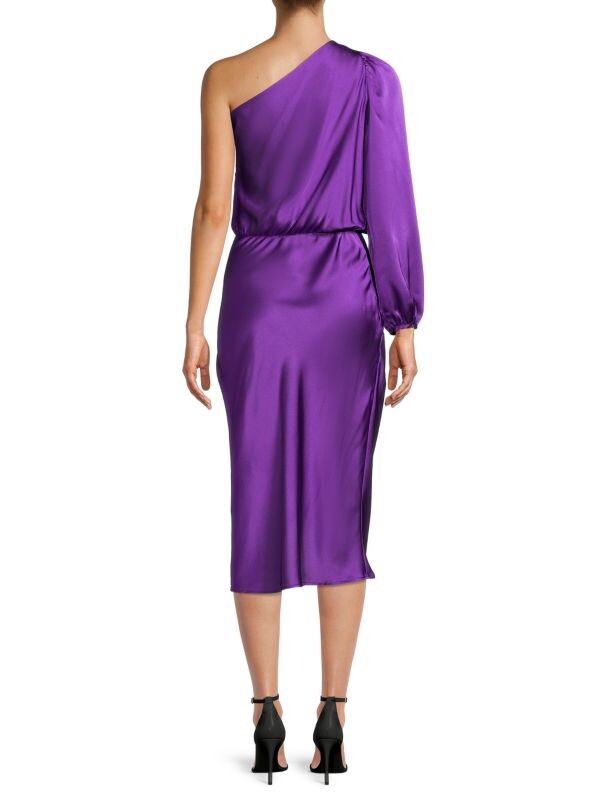 Шикарное платье из атласа с привлекательным вырезом на одно плечо.Вырез на одно плечо.Длинный пышный рукав.Эластичная манжета.Пуловер. стиль.Эластичная талия.Подол тюльпана.Полиэстер/спандекс.Машинная стирка.Сделано в США. ли>