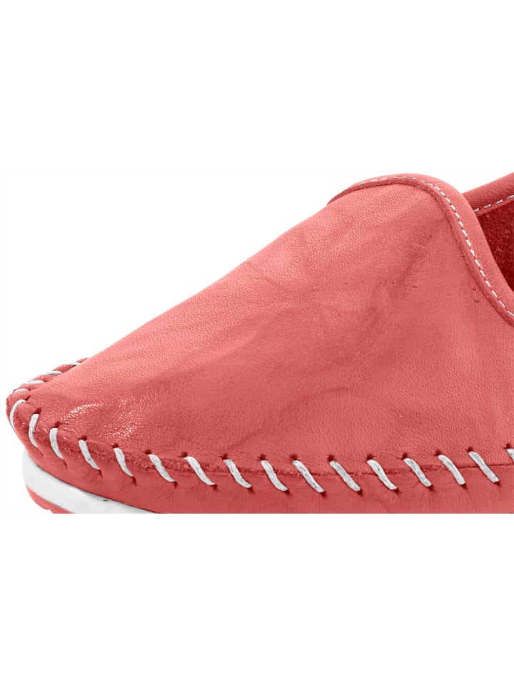 Мягкие, легкие и удобные домашние тапочки из высококачественной коровьей кожи наппа. Отличаются привлекательным мокасинным швом и необработанными краями. Кожаная стелька. Гибкая резиновая подошва.