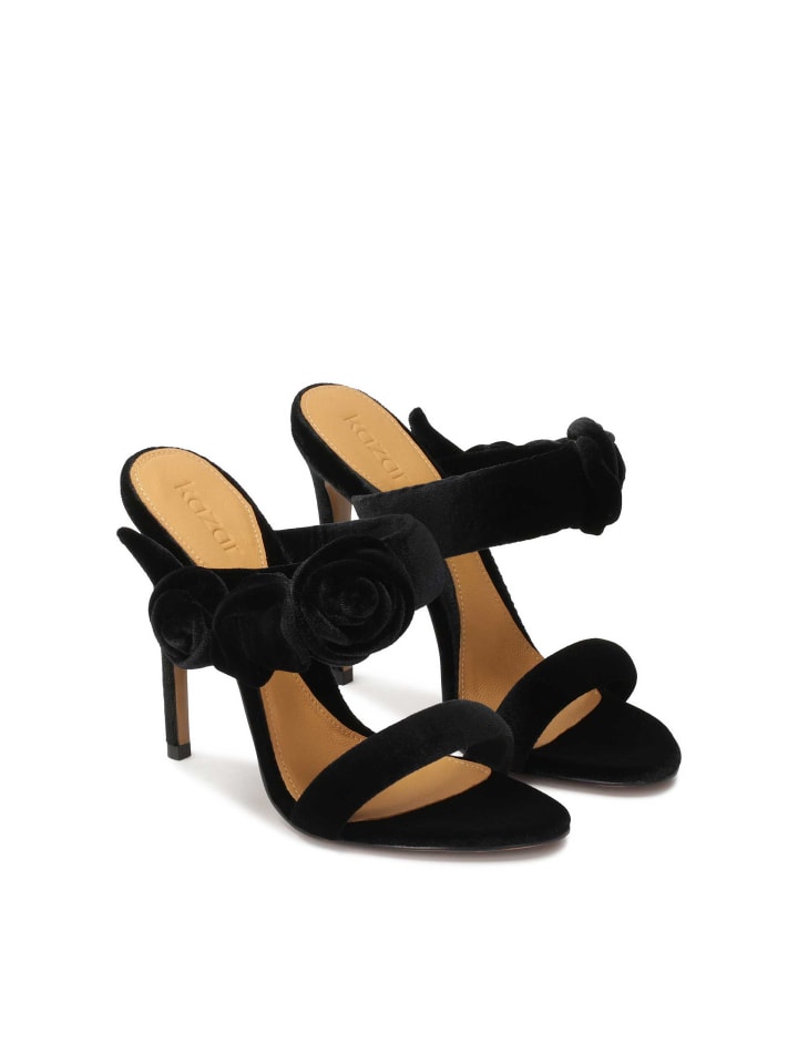 Элегантные вечерние мюли на каблуках - воплощение роскоши и утонченного стиля. Изготовленные из черной замши, они источают роскошь и элегантность, идеально дополняя шикарные наряды. Высокий каблук визуально удлиняет силуэт и придает уверенность. Тщательно продуманная форма обеспечивает исключительный комфорт, несмотря на высоту каблука. Яркой деталью является крупный объемный цветочный орнамент, украшающий боковую часть верхнего ремешка. Все изделия выполнены вручную, что делает каждую пару уникальной. Нет двух одинаковых цветов, что придает каждому изделию особый, неповторимый шарм. Эти элегантные вечерние шлепанцы на высоком каблуке - идеальный выбор для особых случаев, таких как гала-вечера, свадьбы или торжественные ужины. Они идеально дополнят вечерний наряд, придав ему нотку роскоши и неповторимого стиля.