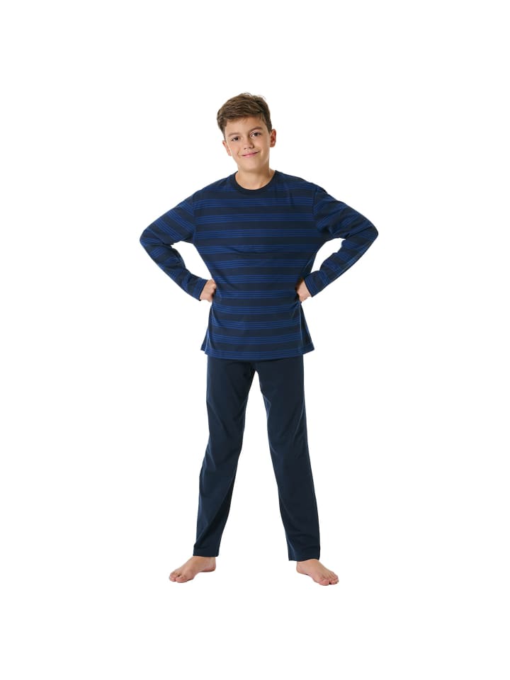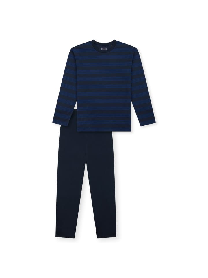 Длинный пижамный комплект для мальчиков от SCHIESSER. Полосатая рубашка с длинными рукавами и длинные однотонные пижамные штаны с круглым вырезом. Высочайшее качество SCHIESSER.