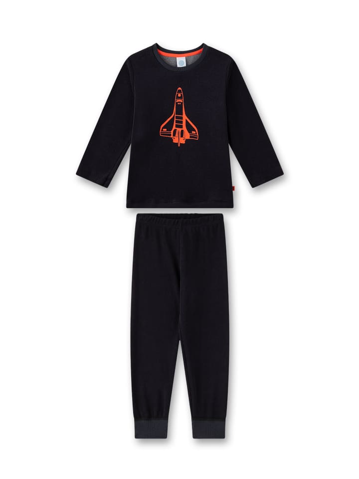 Уютная, мягкая махровая пижама от Sanetta очень темно-серого цвета с изображением космического челнока.