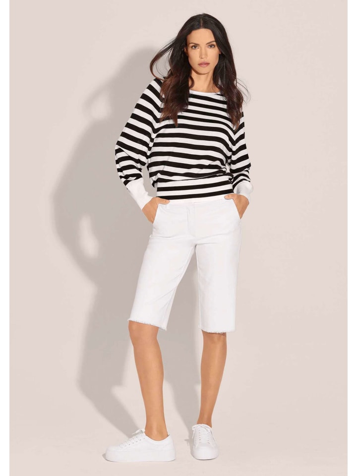 Бермуды с бахромой теперь идеально подходят для городской жизни! Их классический цвет делает их невероятно универсальными - они фантастически смотрятся с топами с узорами. Мы разработали их для современного образа с зауженным силуэтом с пятью карманами и длиной до колена, с фигурным поясом, петлями для ремня и пуговицей с логотипом MADELEINE. Благодаря фигурной кокетке сзади и эластичной ткани они обеспечивают идеальную посадку. Небольшая металлическая этикетка MADELEINE на заднем кармане ненавязчиво указывает на их происхождение. Доступные в двух размерах, они также отлично подойдут для невысоких женщин.