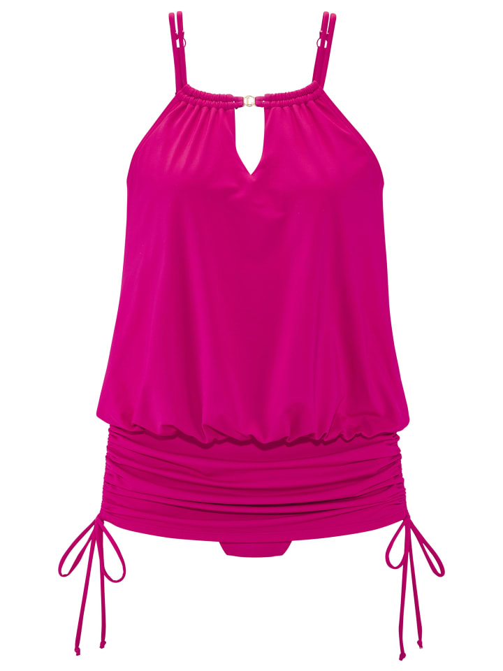 Однотонное платье-купальник от Lascana. Два варианта ношения: можно носить как платье или как купальник. Вырез с декоративной пряжкой на декольте. Съемные мягкие чашечки. Эластичный пояс под грудью спереди. Юбка может быть собрана по бокам. Комфортное качество.