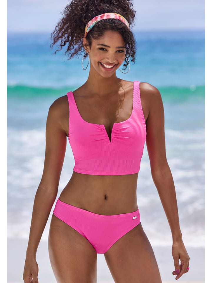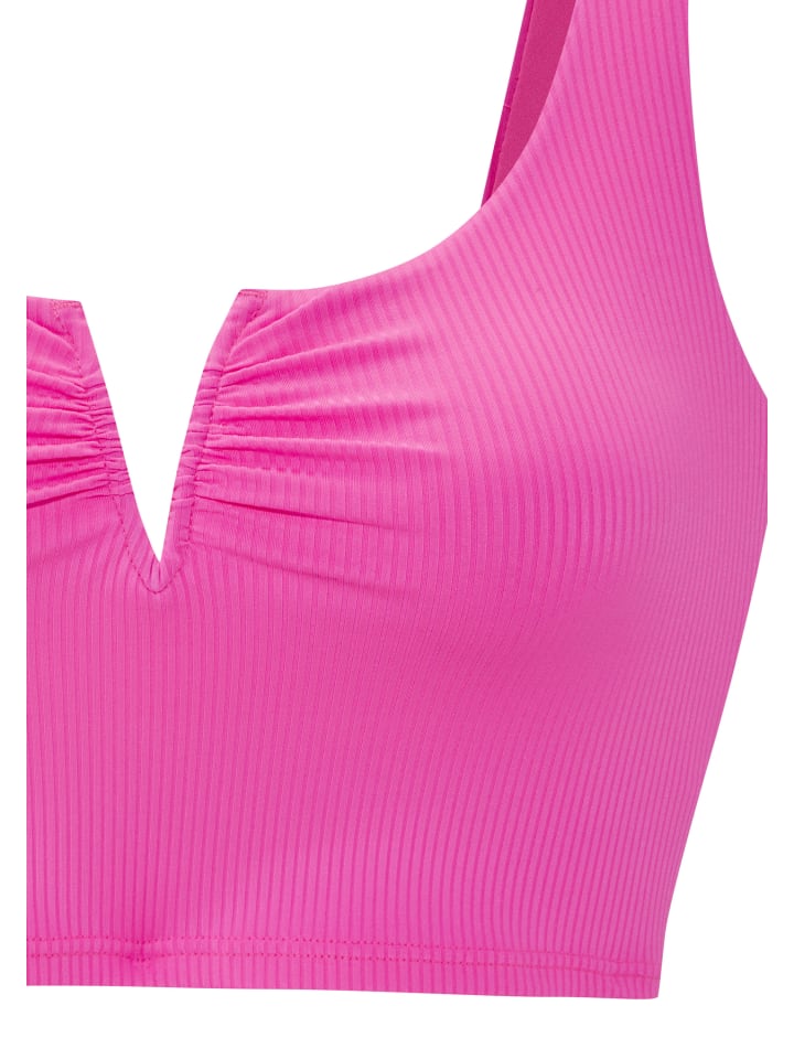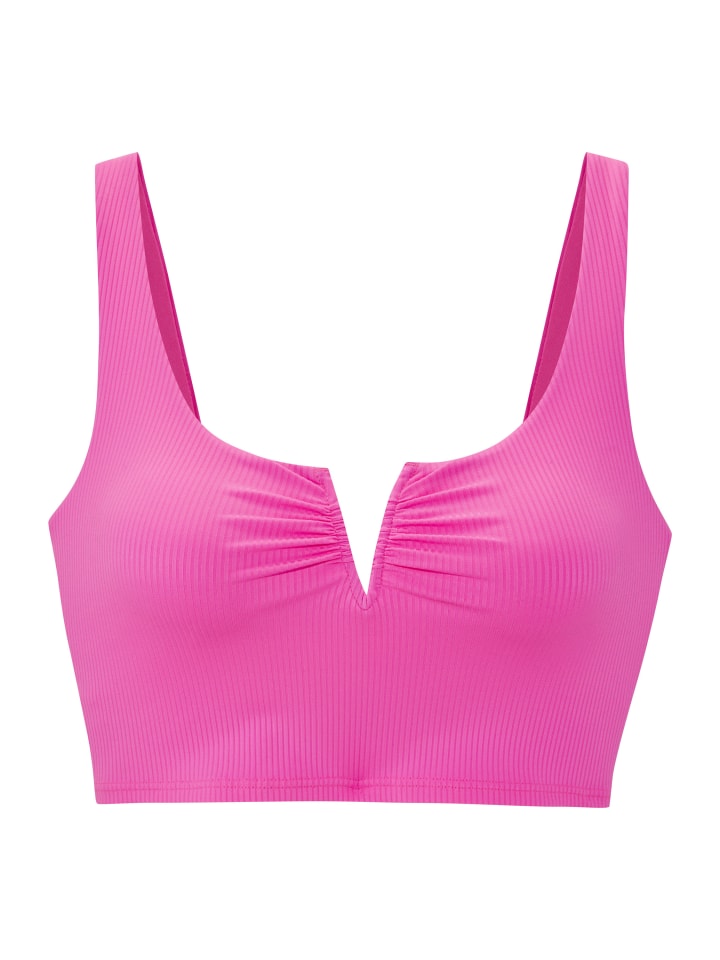 Укороченный верх от бикини Venice Beach. Спортивный дизайн в модном однотонном цвете. V-образный вырез на косточках спереди. Широкие бретели. Съемные мягкие чашечки. Дизайн бикини, позволяющий комбинировать разные элементы. Эластичная ткань из переработанного полиамида.
