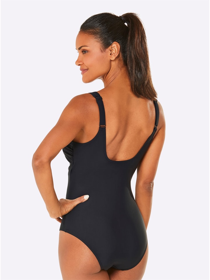 Наш идеально сидящий купальник всегда подчеркнет вашу красоту. Имеет V-образный вырез, регулируемые бретели, удобные мягкие чашечки и полукорсаж. Спереди - сборки и декоративная застежка золотистого цвета. Закругленная спинка. Размеры чашечек: B, C, D, E. Регулируемые бретели. Материал: 80% полиамид, 20% эластан.