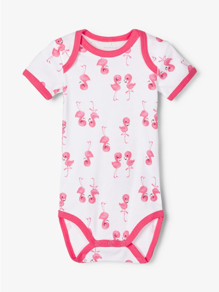 Этот полный комплект из 5 боди, изготовленных из 100% мягкого хлопка, является незаменимым базовым набором, обеспечивающим максимальный комфорт и разнообразие дизайнов. Сочетание веселых принтов с фламинго и цветами, однотонных цветов и полосок добавит разнообразия вашему гардеробу. Благодаря практичным застежкам-кнопкам в области промежности и перекрывающимся плечам, боди особенно легко переодевать и они удобны для повседневного использования.