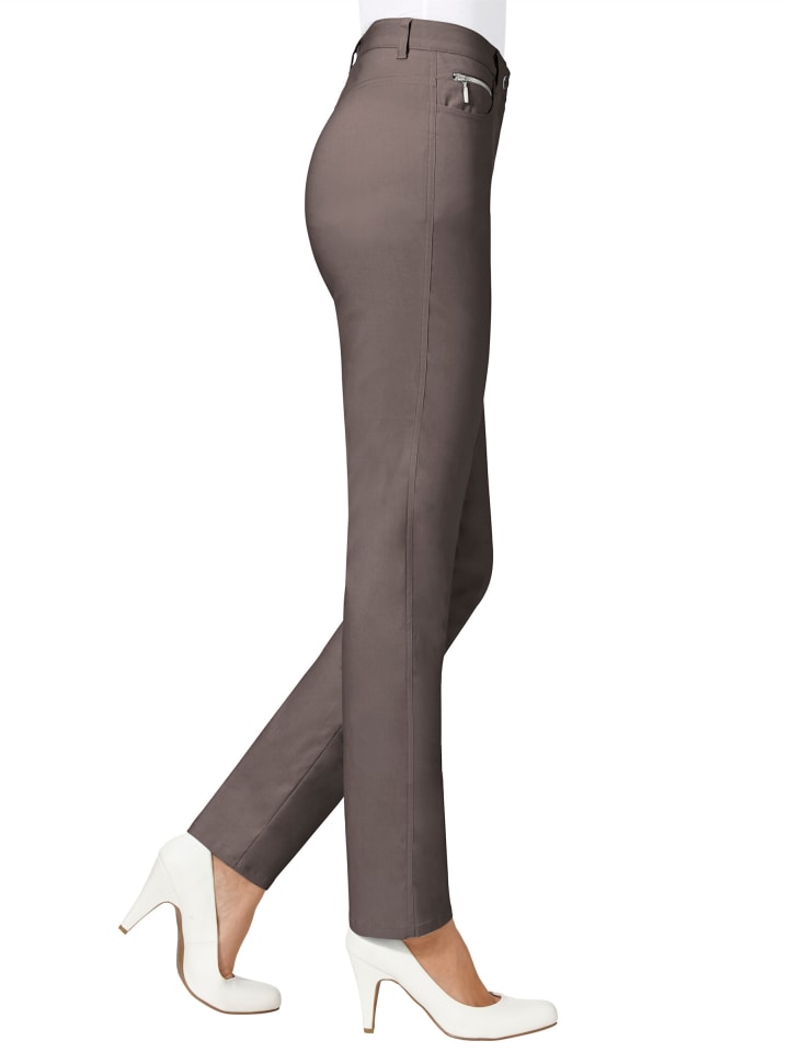 Эти брюки идеально сидят, обеспечивают прекрасную свободу движений и всегда сохраняют свою форму! Эластичные брюки с застежкой на пуговицу и молнию, а также петлями для ремня. Два закругленных кармана и два декоративных кармана с молниями. Втачный пояс. Ширина штанины внизу около 36 см.