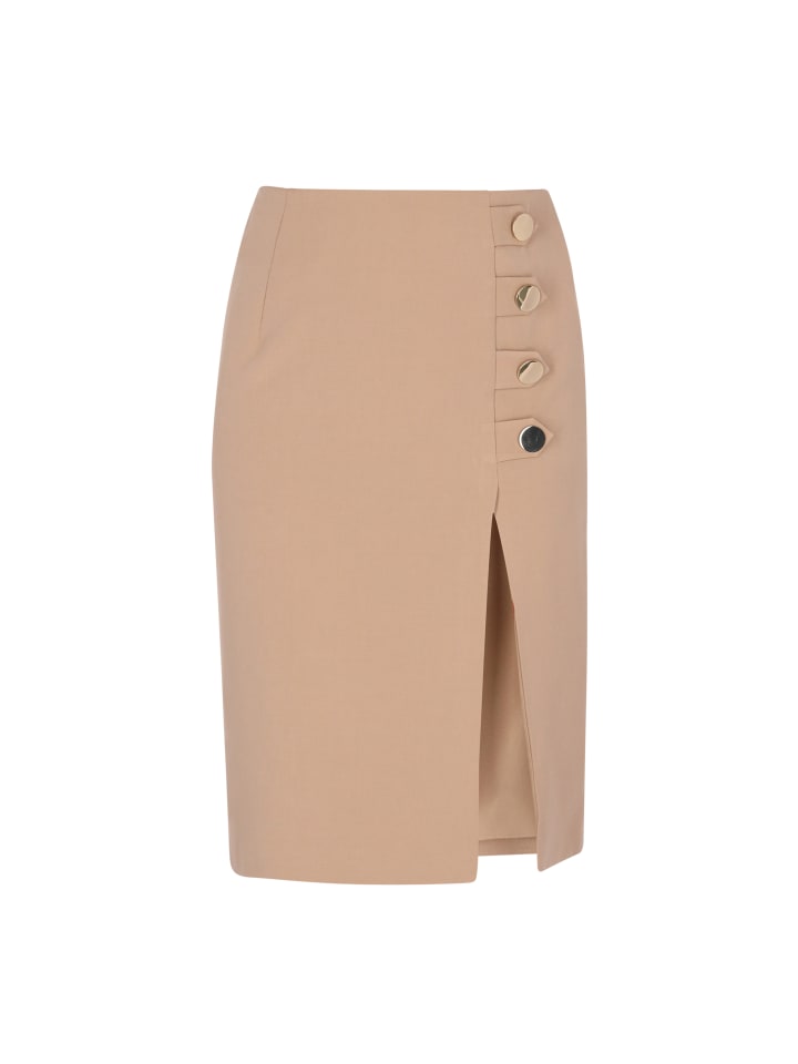 - Юбка миди прямого кроя с высокой талией и декоративными пуговицами