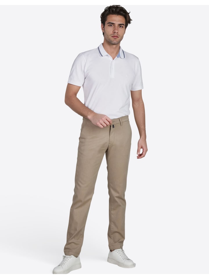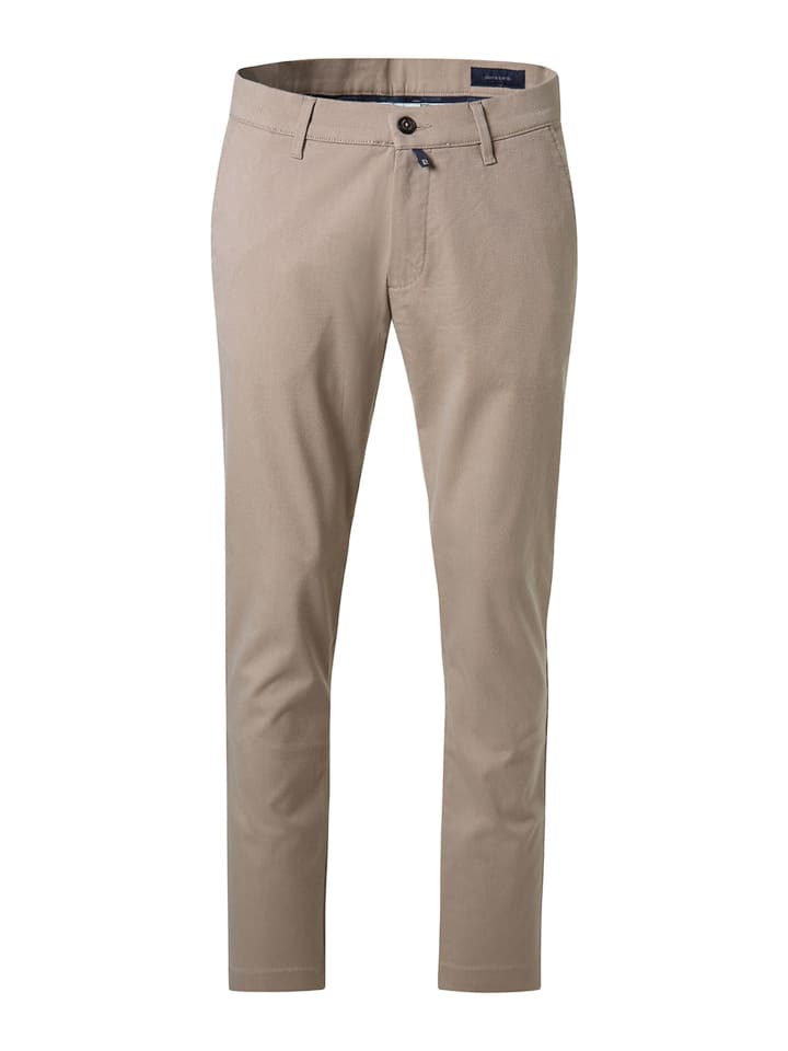 Эти брюки-чинос от Pierre Cardin впечатляют своим зауженным кроем и элегантным видом - идеально подходят для непринужденных, но стильных образов. Эластичный пояс и приятная легкость обеспечивают комфорт при каждом движении. Классические боковые карманы, застежка на пуговицу и молнию делают их идеальным дополнением к современным, изысканным повседневным образам. Особая изюминка: петля для ремня, чтобы закрепить пряжку. - Зауженный крой с современным характером - Идеальная посадка для элегантных повседневных образов - Свобода движений благодаря эластичному поясу - Универсальные, подходят для всего, от делового до повседневного - Идеально подходят для стильных повседневных образов Материал: - 60% хлопок - 37% полиэстер - 3% эластан