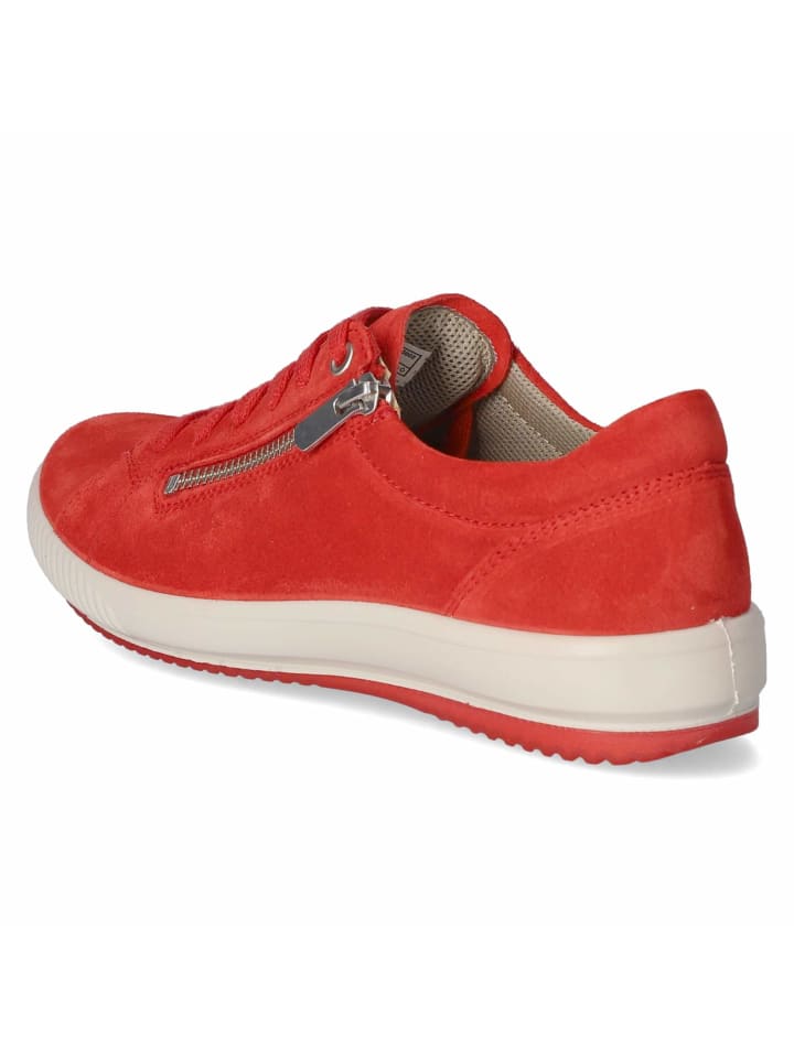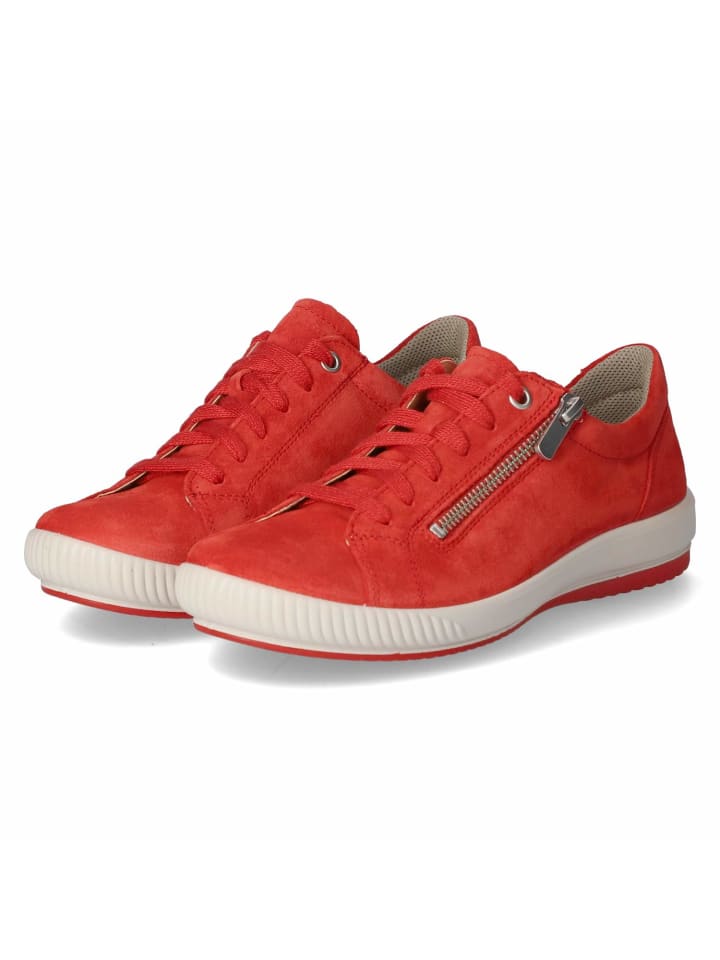 Женские кроссовки Legero TANARO 5.0 сочетают в себе комфорт и динамику. Яркий красный цвет привлекает внимание, а мягкая замша и дышащая подкладка из натуральной кожи обеспечивают комфорт для ног. Сменная мягкая кожаная стелька обеспечивает регулируемую поддержку, закругленный носок позволяет свободно двигать пальцами, а слегка уплотненный воротник и усиленный задник гарантируют устойчивость. Шнурки и боковая молния обеспечивают надежную фиксацию и легкое надевание. Гибкая, нескользящая подошва обеспечивает надежное сцепление в течение всего дня, а размер соответствует стандартному. Ненавязчивые серебристые акценты добавляют дизайну свежести. Совет по стилю: В сочетании с узкими брюками от костюма и полосатой рубашкой эти туфли создают спортивно-элегантный образ, который подойдет как для офиса, так и для свободного времени.