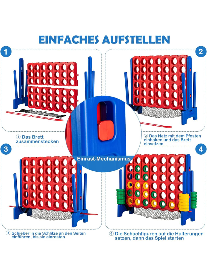 Получите удовольствие от нашей гигантской игры! Она очень быстро устанавливается и проста в использовании. Чтобы перезапустить игру, просто потяните рычаг, и кольца упадут в сетку. И взрослые, и дети получат от нее массу удовольствия, а также она способствует развитию логического мышления, координации и других навыков у детей. Вы можете использовать ее как в помещении, так и на открытом воздухе. Благодаря своим размерам она подходит для всей группы. Изготовлен из высококачественных материалов, легко собирается и разбирается.