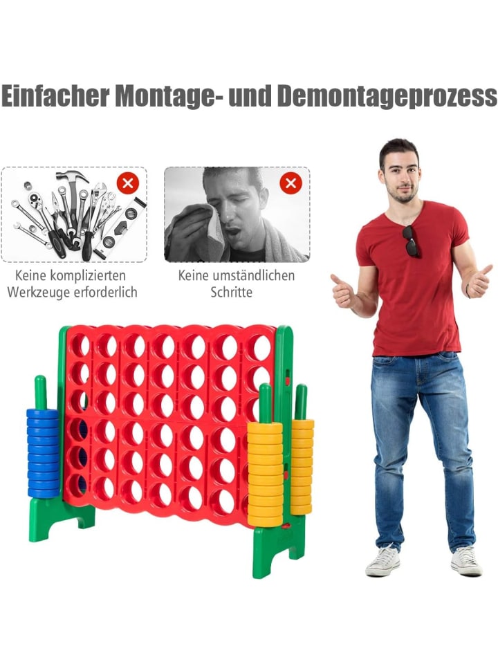 Обязательно обратите внимание на этот игровой набор «Четыре в ряд», который принесет радость всей вашей семье. Пока младшие дети изучают и выполняют правила и ходы, они также в игровой форме развивают навыки командной работы и сотрудничества. Размер игры 104 см идеально подходит как для детей, так и для взрослых, поэтому вы всегда можете бросить вызов своему ребенку и прекрасно провести время вместе. Наш игровой набор «Четыре в ряд» изготовлен из высококачественных материалов PE и PP, что гарантирует долговечность игры.