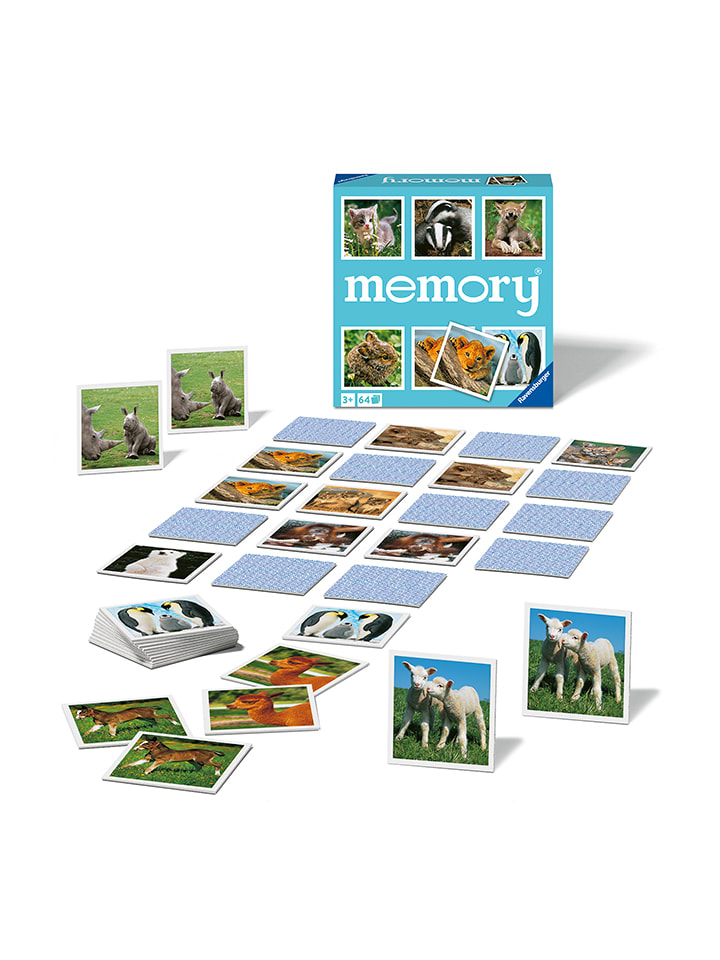 Коала, теленок, олененок, а где-то еще и детеныш шимпанзе… Где же он был? Для увлекательных игровых раундов среди карт спрятаны очаровательные детеныши животных, которые стимулируют память как детей, так и взрослых. В этой классической игре от Ravensburger детеныши животных занимают центральное место: детеныши домашних животных, животных из зоопарка и лесных животных лежат лицевой стороной вниз на столе. Побеждает игрок, нашедший больше всего совпадающих пар.