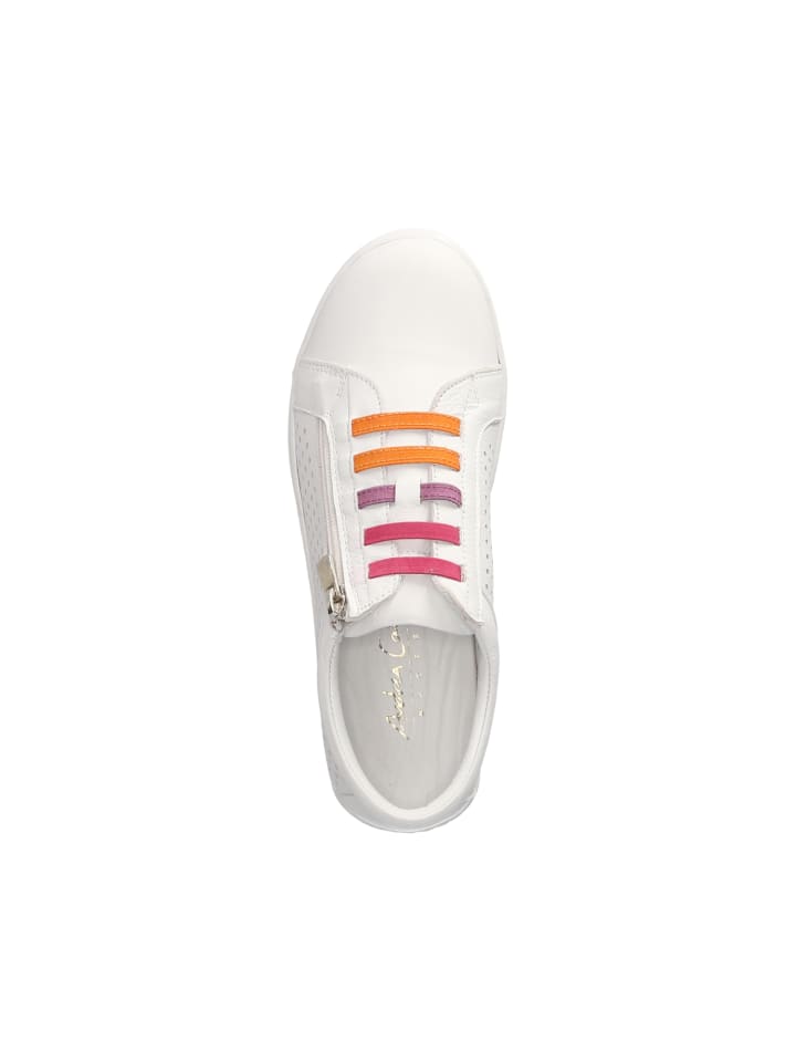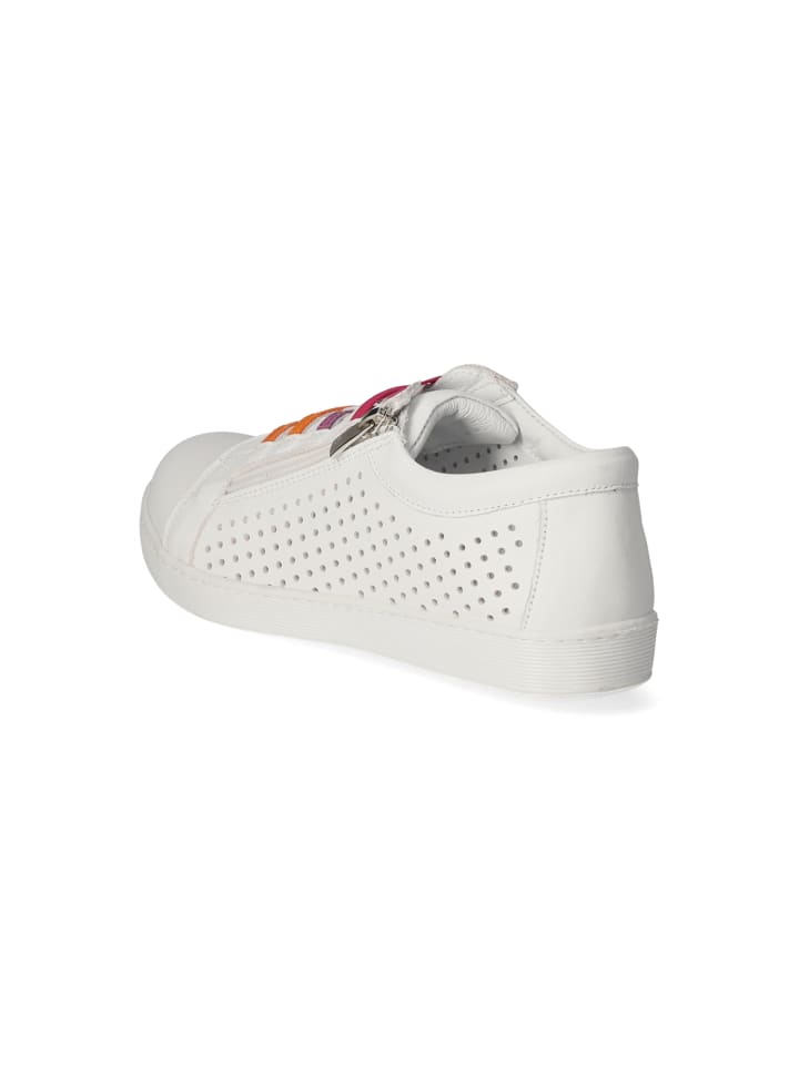Универсальные слипоны Andrea Conti для городских прогулок впечатляют своей гладкой белой кожей и тщательно продуманным дизайном. Перфорированные вставки добавляют свежести, а цветные эластичные ленты на подъеме стопы придают спортивный акцент. Закругленный усиленный носок и боковая молния обеспечивают легкое и удобное надевание и надежную фиксацию. Внутри роскошная кожаная подкладка дополняет мягкую, сменную стельку; удобная съемная стелька позволяет при необходимости использовать ортопедические стельки. Гибкая, нескользящая подошва с легким протектором обеспечивает надежную опору. Размер: соответствует стандартному. Совет по стилю: сочетайте с джинсами до щиколотки и свободной рубашкой для создания современного повседневного образа. Тренч придает образу элегантности.