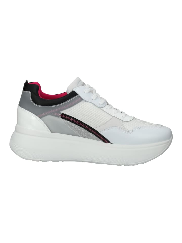 Эти стильные кроссовки на платформе от Nero Giardini привнесут свежесть в следующий сезон. Удачное сочетание материалов в многослойном дизайне делает эту модель настоящей изюминкой! Прочная платформа выгодно подчеркивает ноги и визуально удлиняет их. Благодаря шнуркам в тон, обувь идеально сидит на ноге, обеспечивая оптимальную поддержку. Эти кроссовки гарантированно будут уместны с джинсами, платьем или юбкой. - Застежка: Шнуровка - Тип каблука: Платформа - Высота каблука: 5 см - Стелька: Кожа - Подкладка: Кожа - Текстиль - Подошва: Другой материал - Верх: Кожа - Текстиль