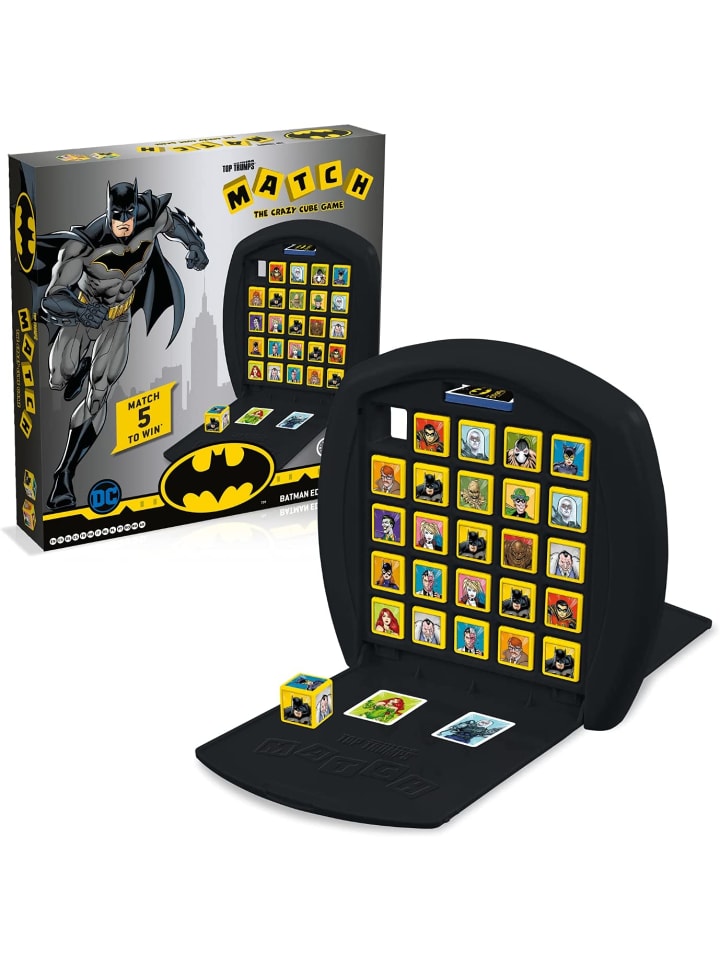 Одни считают его спасителем и героем, другие критикуют как мстителя-изгоя - миллиардер Брюс Уэйн, более известный как Бэтмен! Он и другие персонажи из фильмов о Бэтмене объединились в нашей игре TOP TRUMPS Match на 25 кубиках с изображениями персонажей - Харли Квинн, Бэтгерл или Женщина-кошка ждут вас. Расположите 5 кубиков с одинаковым рисунком вертикально, горизонтально или по диагонали, чтобы выиграть игру.