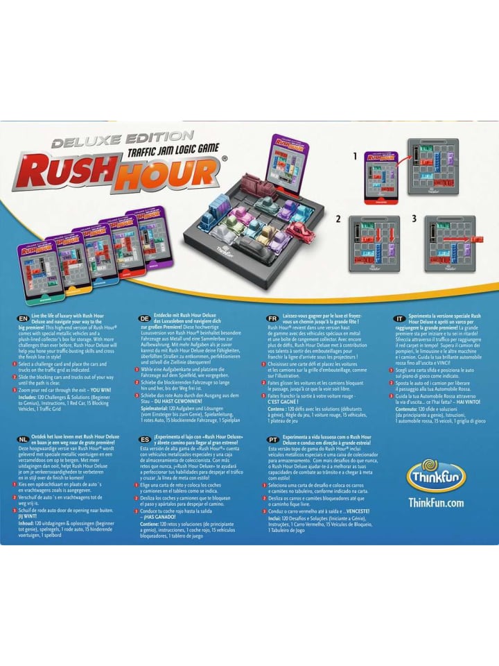 - Популярная головоломка в делюкс-издании: Транспортные средства впечатляют высококачественным металлическим видом и могут храниться в эксклюзивной коллекционной коробке. Благодаря этому Rush Hour Deluxe станет идеальным подарком для любого поклонника головоломок.