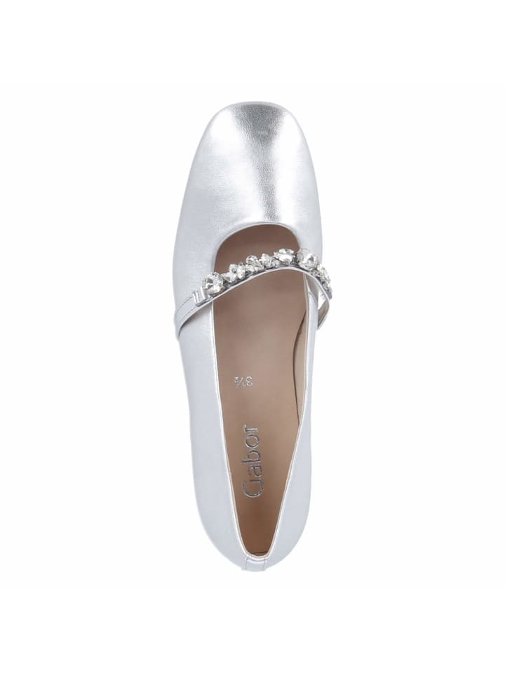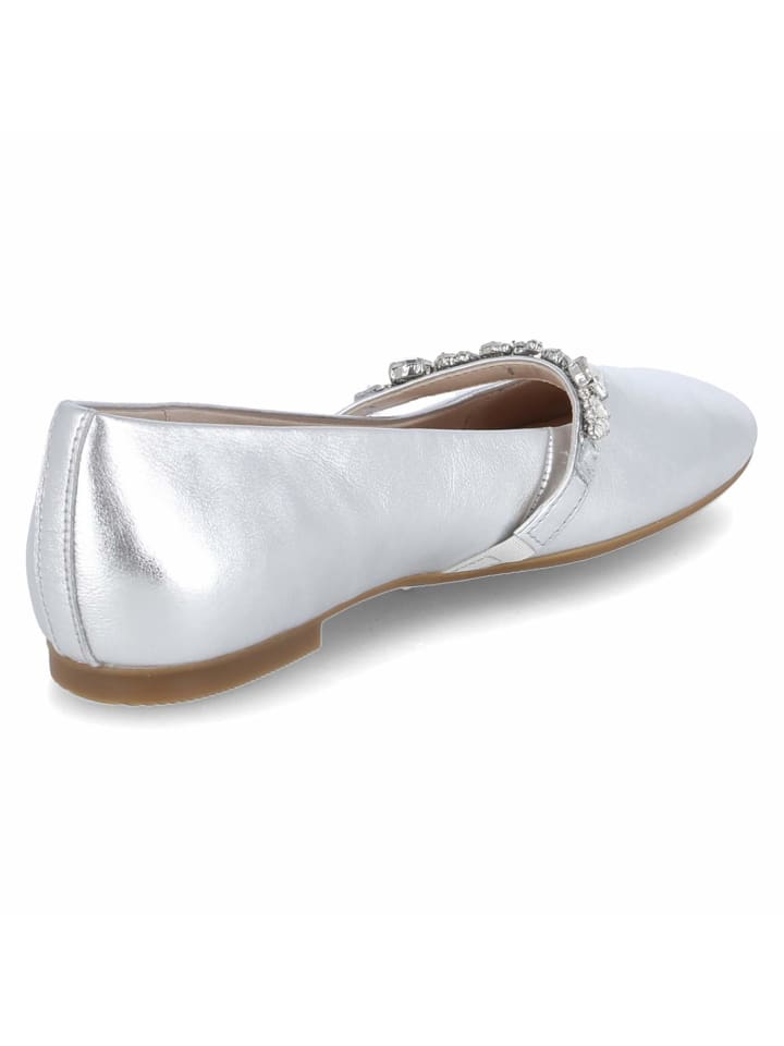 Эти балетки Gabor сочетают в себе женственную элегантность и повседневный комфорт. Гладкая серебристая кожа мягко отражает свет, а гибкий ремешок с драгоценными камнями на подъеме добавляет сверкающих акцентов. Квадратный носок придает современный, лаконичный вид, а усиленный каблук и нескользящая, гибкая подошва обеспечивают надежную опору. Внутри кожаная подкладка и мягкая кожаная стелька обеспечивают приятный микроклимат и длительный комфорт; размер соответствует заявленному, а открытый носок позволяет легко надевать балетки. Это делает их идеальным завершающим штрихом для элегантных образов, от дневных мероприятий до вечерних торжеств. Совет модника: Элегантный эффект особенно тонко проявляется в сочетании с плиссированной юбкой миди и тонким трикотажным топом.