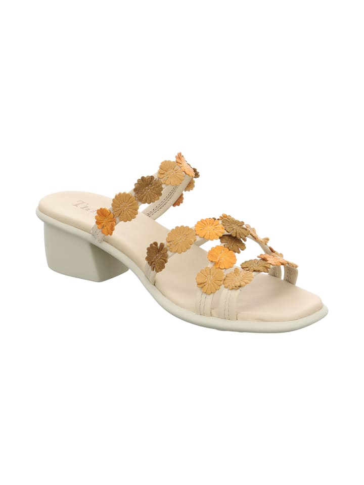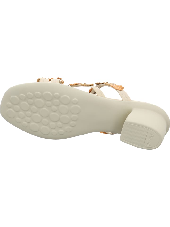 Босоножки на каблуке VIVI обязаны своим летним шармом не только изысканным кожаным цветочным аппликациям. Тонкие ремешки также способствуют воздушности этих игривых сандалий Think! Благодаря модному квадратному носку, особенно легкой подошве и слегка мягкой стельке, в этих женственных туфлях очень комфортно ходить. VIVI делает даже долгие дни приятными.