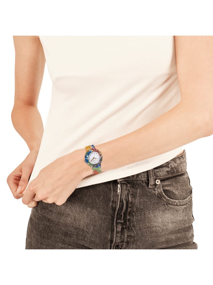 Эти часы, украшенные тканями Liberty London, идеально подойдут тем, кто хочет добавить изюминку в свой образ. Корпус диаметром 32 мм вмещает белый циферблат с золотыми цифрами и стрелками UPMR. Ремешок, выполненный из гипоаллергенного силикона и хлопкового поплина по технологии RPL, украшен элегантным цветочным узором в ярко-синих тонах.
