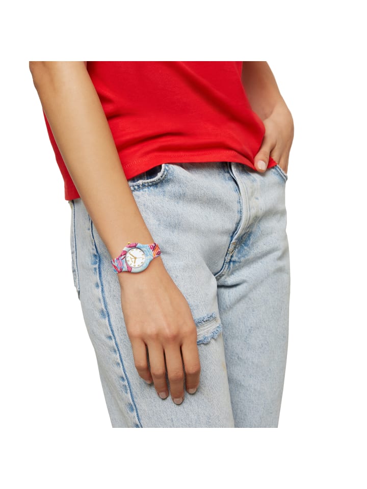 Огромный букет разноцветных цветов украшает эти хип-хоп часы, делая их идеальным аксессуаром для празднования наступления лета. На ткани лайкра нанесены восхитительные маленькие цветочки различных форм и цветов, которые затем приклеиваются к силиконовому ремешку с помощью технологии RPL. Это гарантирует, что цвета и текстура ткани останутся неизменными с течением времени, создавая невероятно крутой эффект.