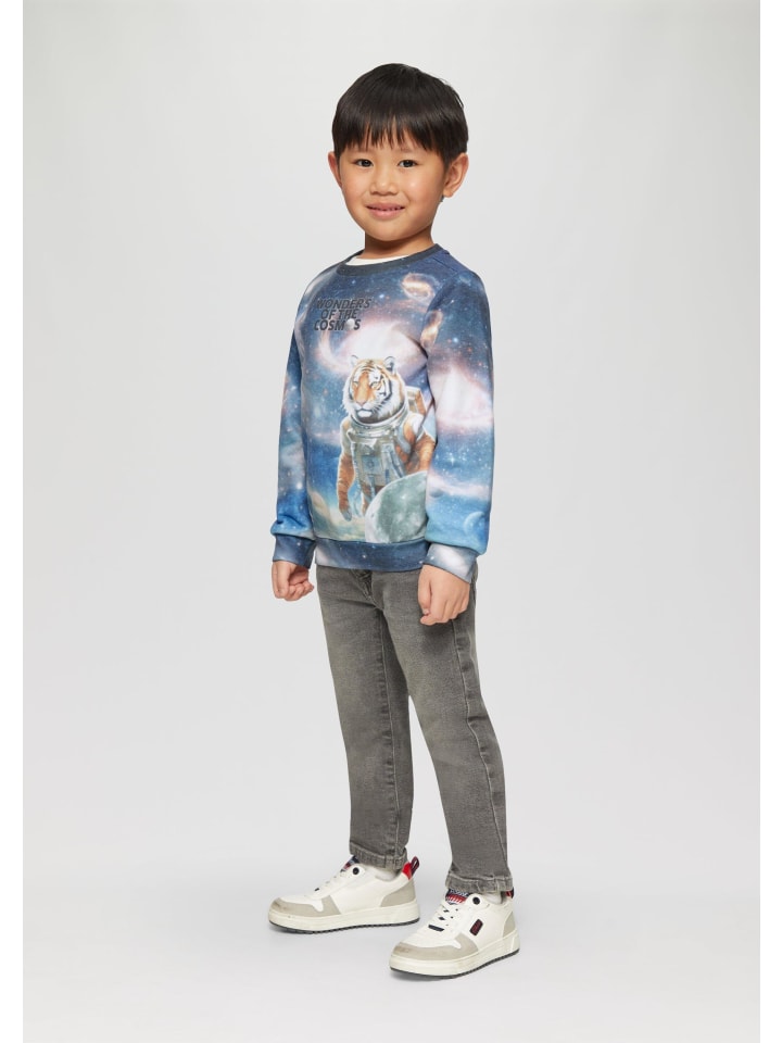 Эта классная толстовка с принтом по всей поверхности - идеальный компаньон для активных детей. Мягкая ткань и стандартный крой обеспечивают свободу движений для игр и бега. Круглый вырез и длинные рукава согреют в прохладные дни. Универсальная вещь, которая должна быть в гардеробе каждого ребенка!