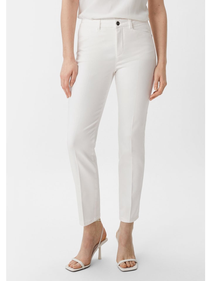 Стильная непринужденность. Эти брюки прямого кроя с зауженными штанинами и длиной до щиколотки создают женственный силуэт. Изготовленные из мягкого материала, они обеспечивают исключительный комфорт в повседневном образе. Боковые карманы и пояс средней посадки добавляют расслабленности и элегантности - идеально подходят для модных многослойных образов прохладными вечерами. - Пояс средней посадки, зауженные штанины - Мягкая эластичная хлопковая ткань - Деталь с логотипом - Задний карман на молнии и пуговице, боковой карман Материал: - 60% хлопок - 38% полиэстер - 2% эластан