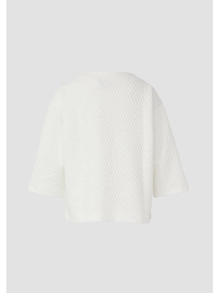 Структурированная элегантность сочетается с повседневным комфортом: эта толстовка свободного кроя отличается изысканным трикотажным узором и современным воротником-стойкой. Свободный крой с рукавами три четверти делает ее идеальным выбором для неформальных встреч и вечерних посиделок после работы. Она подчеркнет ваш индивидуальный стиль - легко, уверенно и всегда в тренде. - Свободный крой - Трикотажная ткань - Трикотажный узор - Воротник-стойка - Рукава три четверти