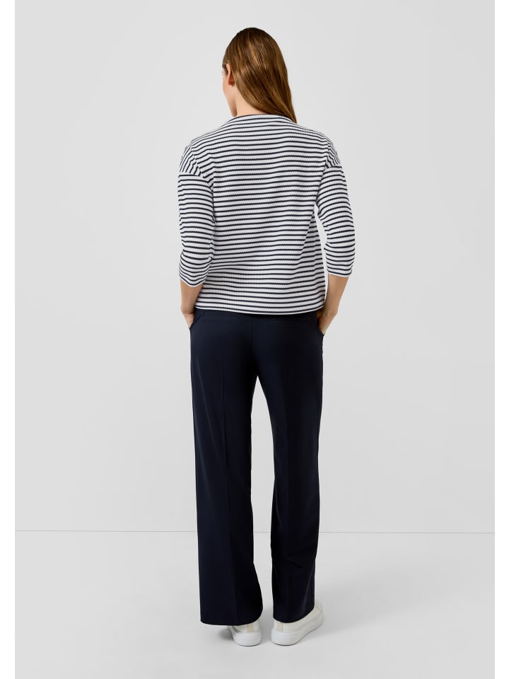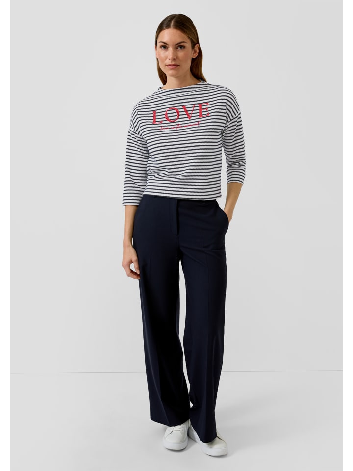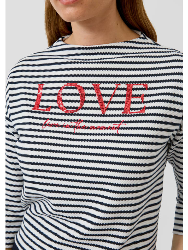 Структурированная элегантность сочетается с непринужденным шармом: эта толстовка с рукавами 3/4 и воротником-стойкой отличается высококачественными деталями, такими как вышивка и пайетки. Свободный крой и полосатые акценты придают вам современный, уверенный вид. Идеально подходит как для повседневной носки, так и для деловых случаев, подчеркивая ваш индивидуальный стиль вневременной изысканностью и универсальными вариантами сочетания. - Свободный крой - Хлопок, с вышивкой, отделкой пайетками, полосками и принтом на передней части - Воротник-стойка - Рукава 3/4 - Повод: Деловой